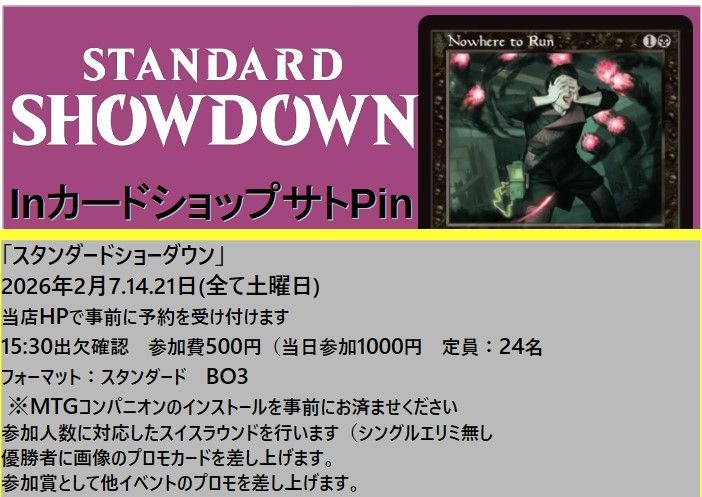 2026年2月14日開催の《スタンダードショーダウン》の参加予約を行います。
