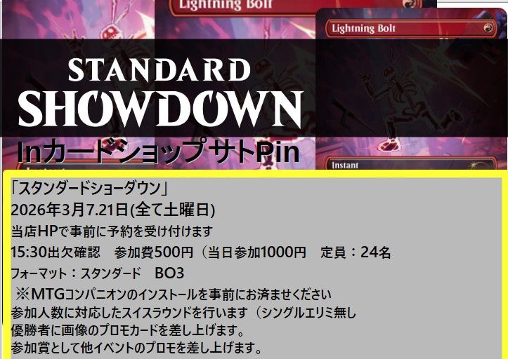 2026年3月21日開催の《スタンダードショーダウン》の参加予約を行います。
